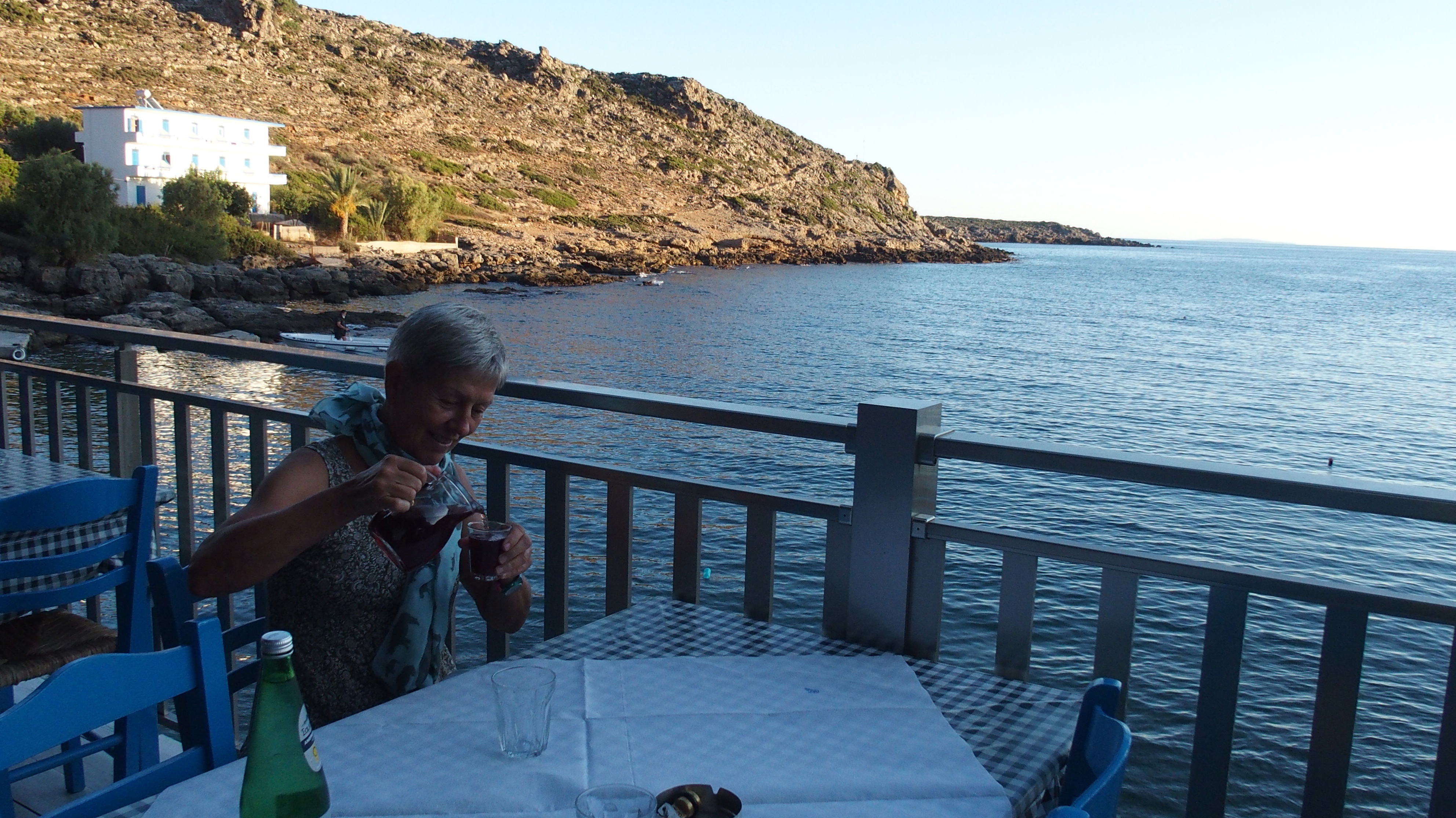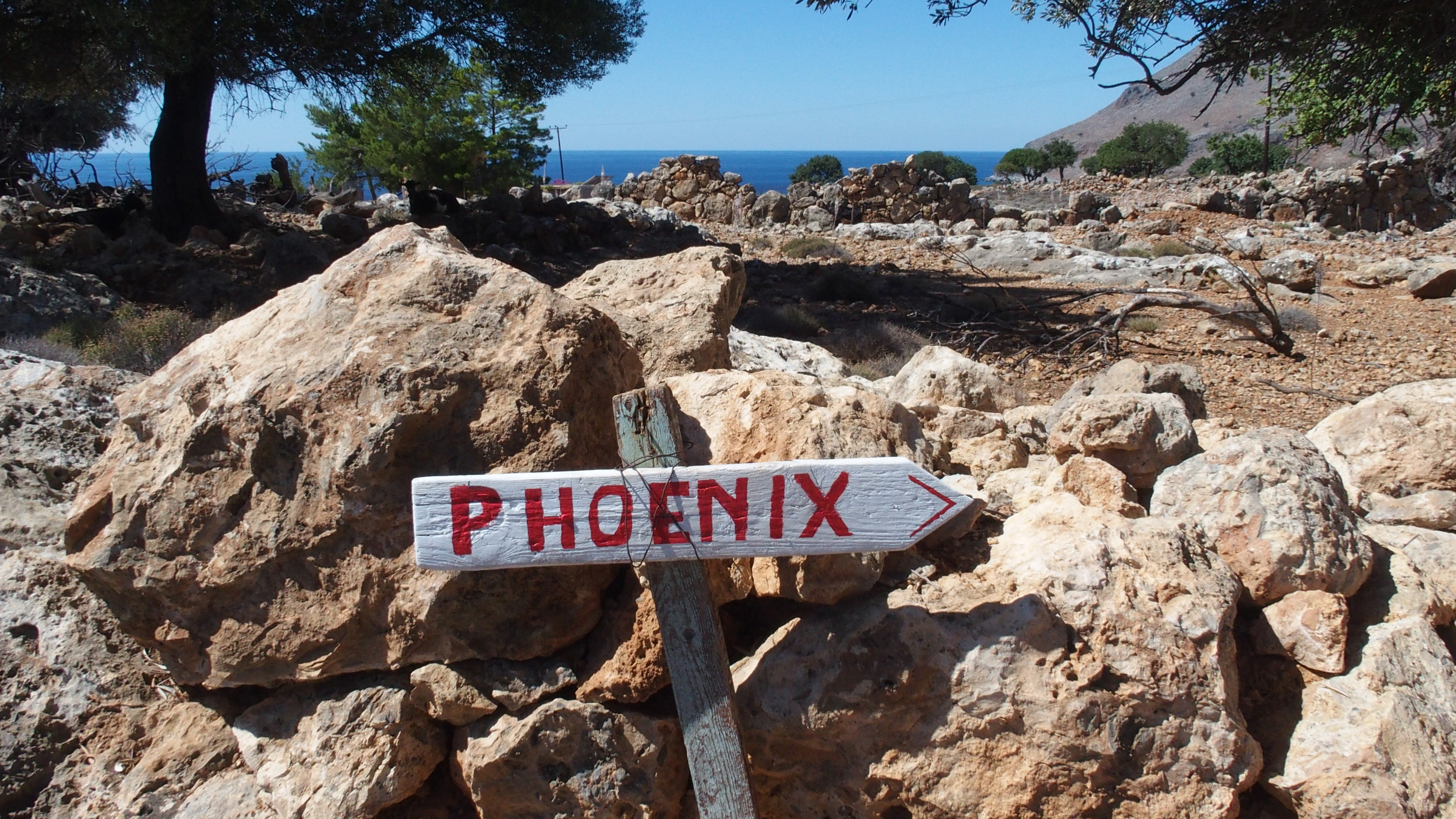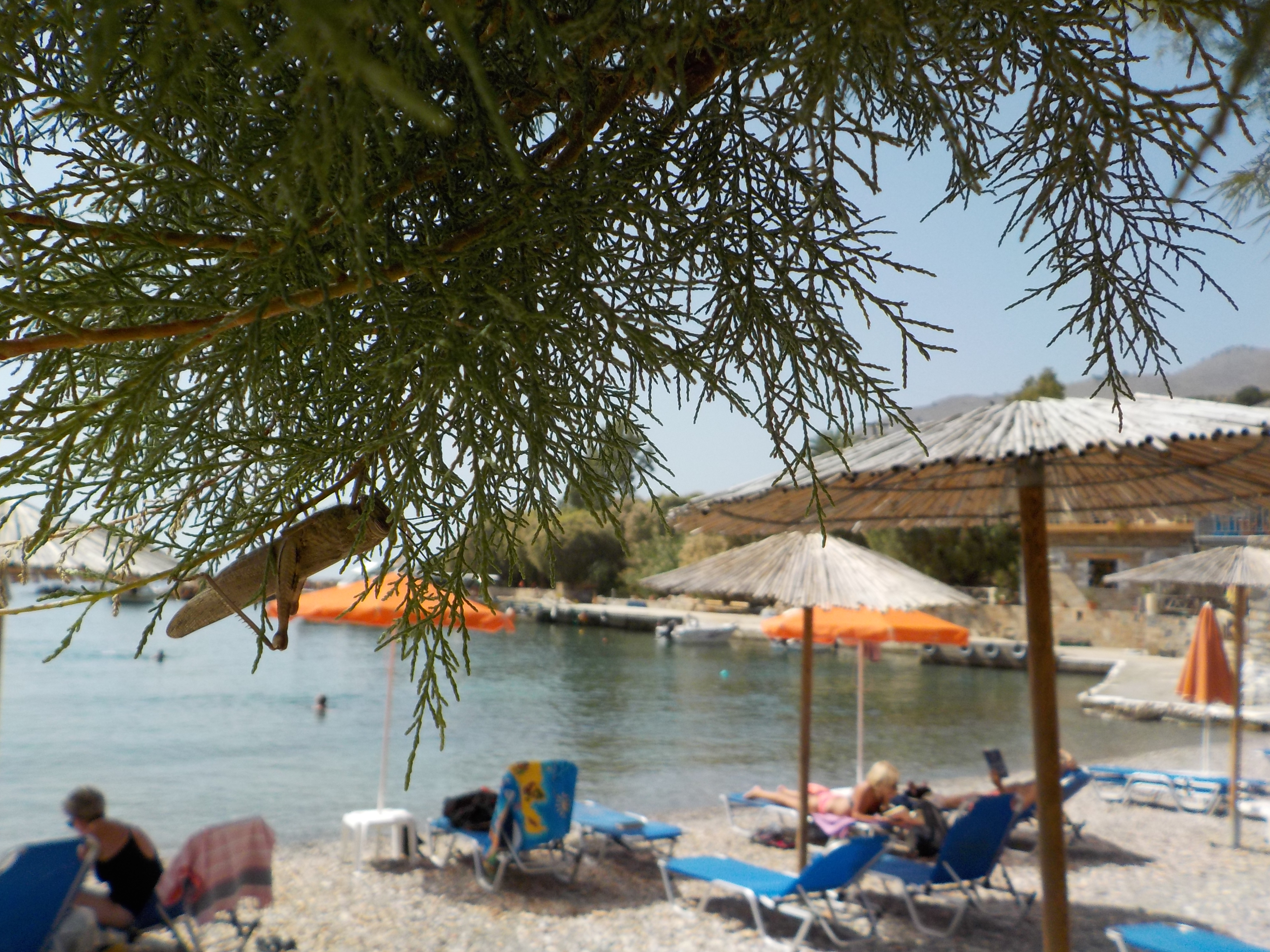 25.September Phoenix. Ich spüre, dass mir Erin ihren Käfer doch noch mitgegeben hat auf die Reise. Das Hotelzimmer ist nett, aber links und rechts die Nachbarn sind unangenehm, weil sie immer auf dem Balkon rauchen und dies schon morgens um 7h vor dem oder anstatt Frühstück. Für uns gibt es "Zmorge" unten auf der Terasse und glücklicherweise haben sie auch Cappuchinos aus der Maschine, wenn auch nur mit Nescafé. Wir erkundigen die nächste Umgebung schwimmend und machen eine Wanderung nach Loutros, ca. 1.7km jeder Weg. Dort kaufen wir ein paar Früchte um das "Zmorge" zu bereichern und so geht der Tag vorbei. Das Wasser ist wunderbar sauber, man kann schnorcheln und baden genau vor der Haustür und zur Unterhaltung halten dort die Taxischiffchen, die Leute nach Loutros, Sfakia oder zum Marmarastrand fahren. Viele Tagesausflügler kommen hier nur zum essen, gehört wohl zu ihrem Allincluseprogramm.