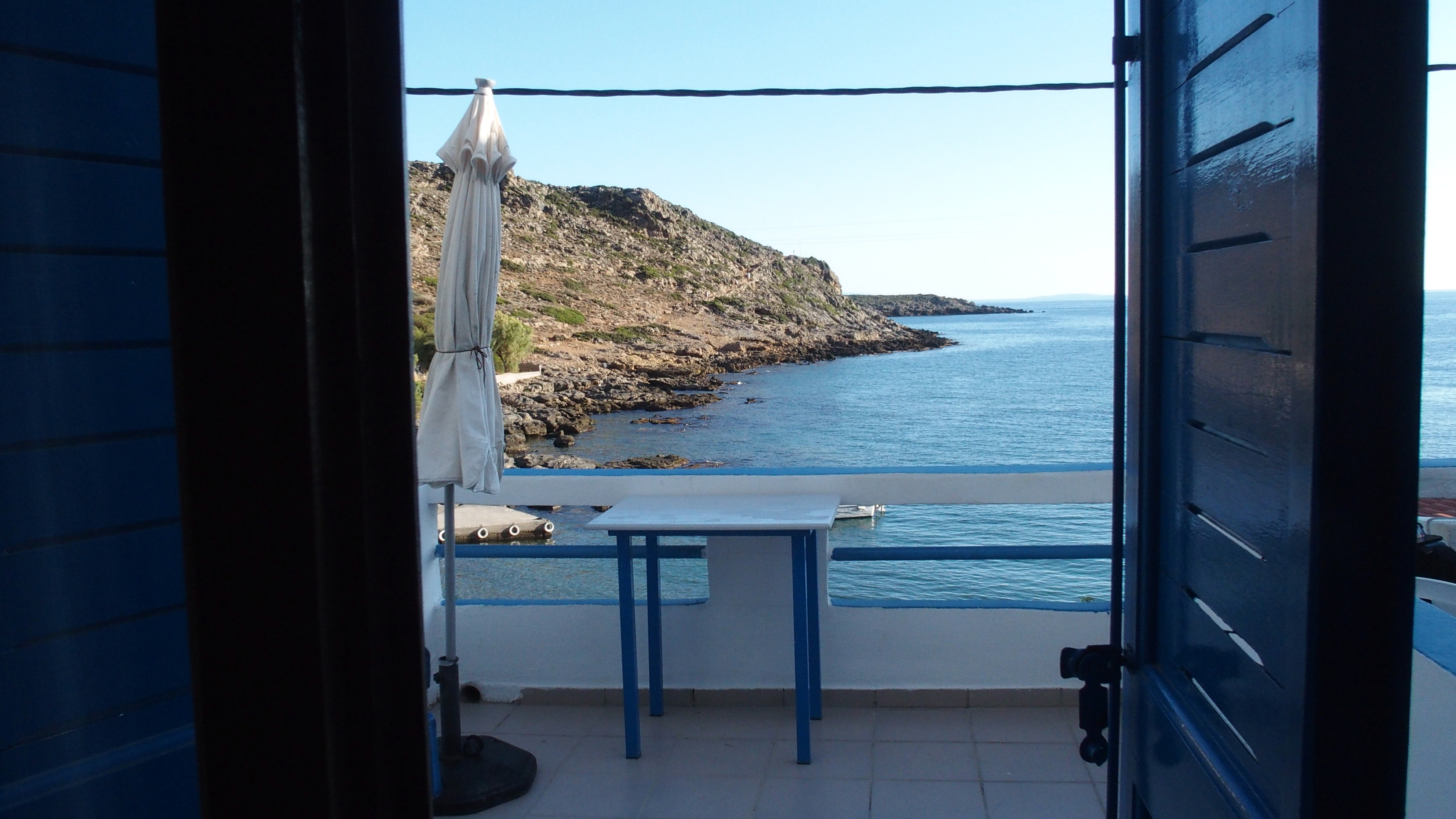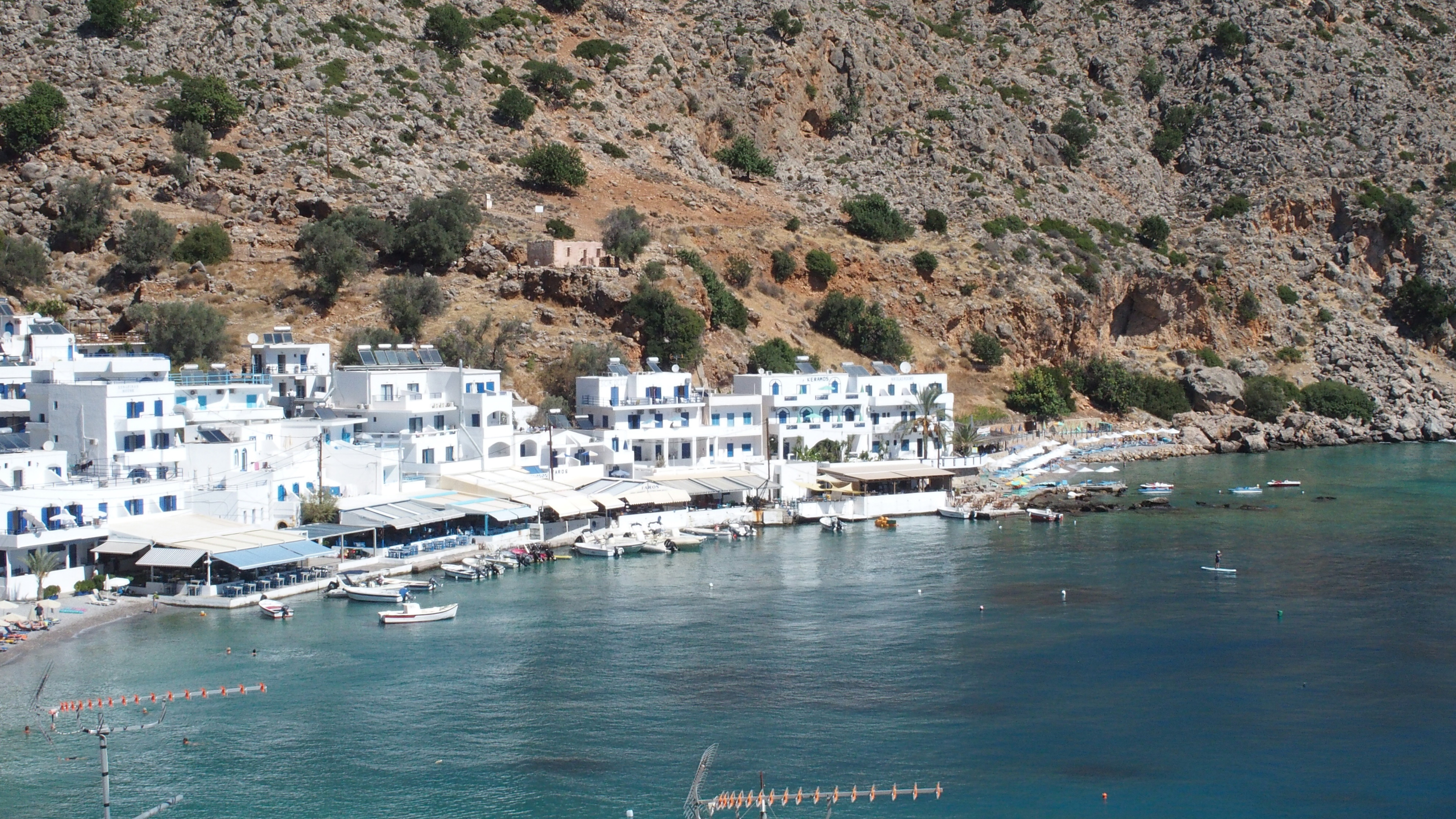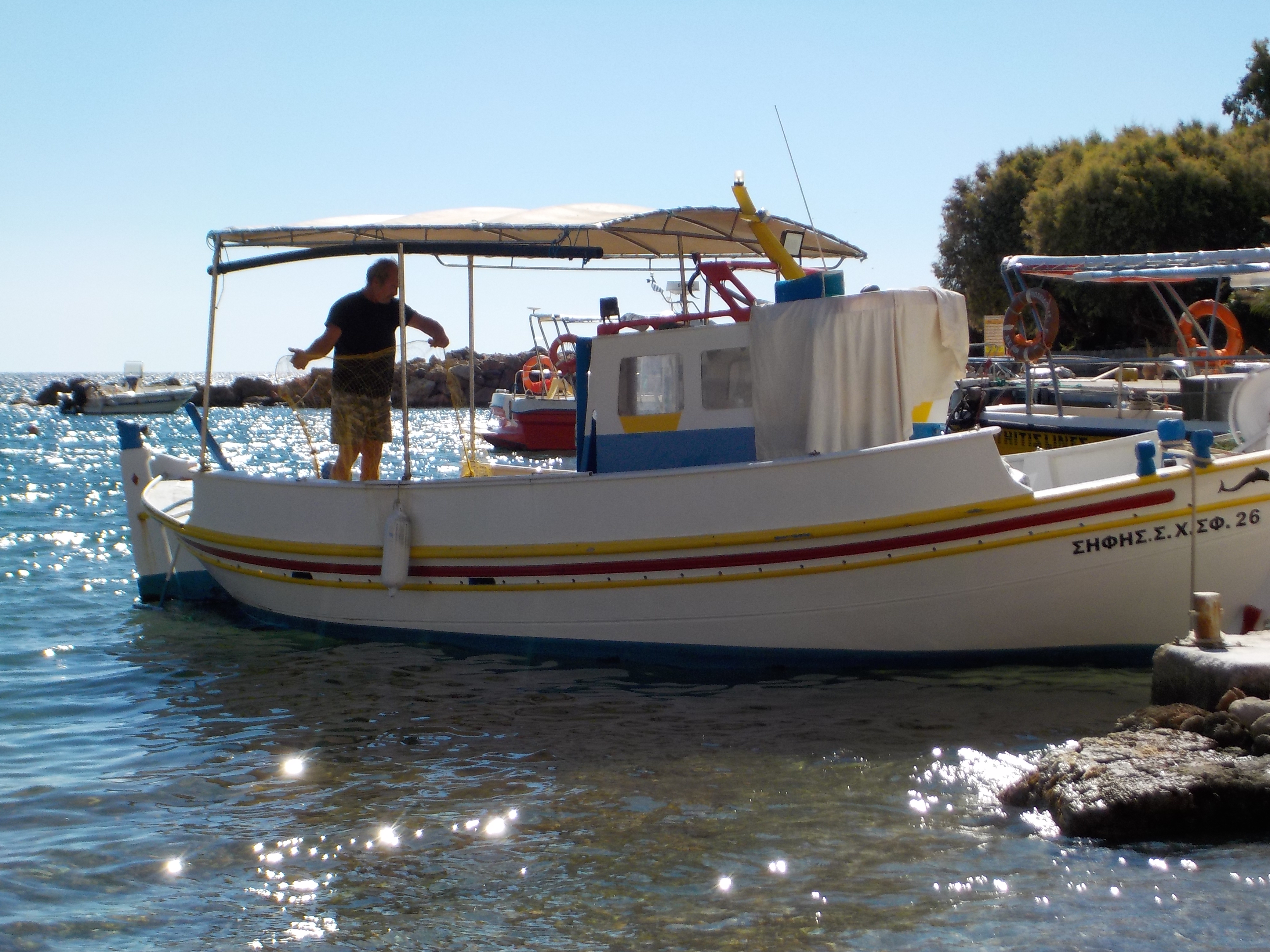 25.September Phoenix. Ich spüre, dass mir Erin ihren Käfer doch noch mitgegeben hat auf die Reise. Das Hotelzimmer ist nett, aber links und rechts die Nachbarn sind unangenehm, weil sie immer auf dem Balkon rauchen und dies schon morgens um 7h vor dem oder anstatt Frühstück. Für uns gibt es "Zmorge" unten auf der Terasse und glücklicherweise haben sie auch Cappuchinos aus der Maschine, wenn auch nur mit Nescafé. Wir erkundigen die nächste Umgebung schwimmend und machen eine Wanderung nach Loutros, ca. 1.7km jeder Weg. Dort kaufen wir ein paar Früchte um das "Zmorge" zu bereichern und so geht der Tag vorbei. Das Wasser ist wunderbar sauber, man kann schnorcheln und baden genau vor der Haustür und zur Unterhaltung halten dort die Taxischiffchen, die Leute nach Loutros, Sfakia oder zum Marmarastrand fahren. Viele Tagesausflügler kommen hier nur zum essen, gehört wohl zu ihrem Allincluseprogramm.