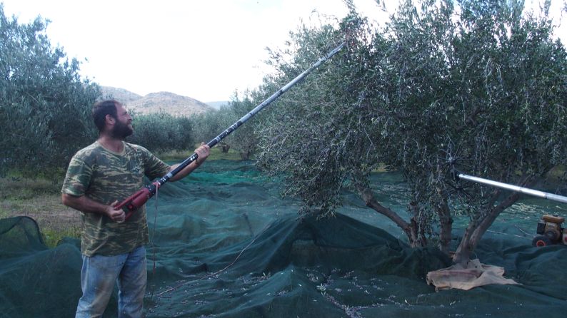 Am nächsten Morgen steht Frank pünktlich am Hafen, aber kein Fischer ist zu sehen. Er plaudert mit einem Mann, der Netze flickt. Dieser schickt ihn um die Ecke nach Moritati zu einer Taverne, die den frischen Fisch haben soll. Er geht hin, schaut die Fische nicht an und macht ab für den Abend. Wir wollen Abends dort essen, wo der Typ aber seine Kühlschublade aufmacht sehen wir die Fische, sie haben trübe Augen, aber es ist nicht das Aeusserliche, was abschreckt, oh nein, man riecht sie von Weitem. Schönen Abend dann und weg sind wir. Am Nachmittag übrigens, waren wir am Palmenstrand von Vahi. Schön zum baden, allerdings zum draussen sitzen muss man hinter einem Stein Platz nehmen. Der Wind, der Wind. Es gibt ein paar schöne Fischchen hier, auch eine hübsche gelbe Trompete mit einem hellblauen Schwanz. Als  Abschluss gehen wir heim um zu duschen und gehen im Nachbardorf in der Taverne die den letzten Abend auf hat, Sardinen essen. Ab Morgen werden Oliven geerntet.