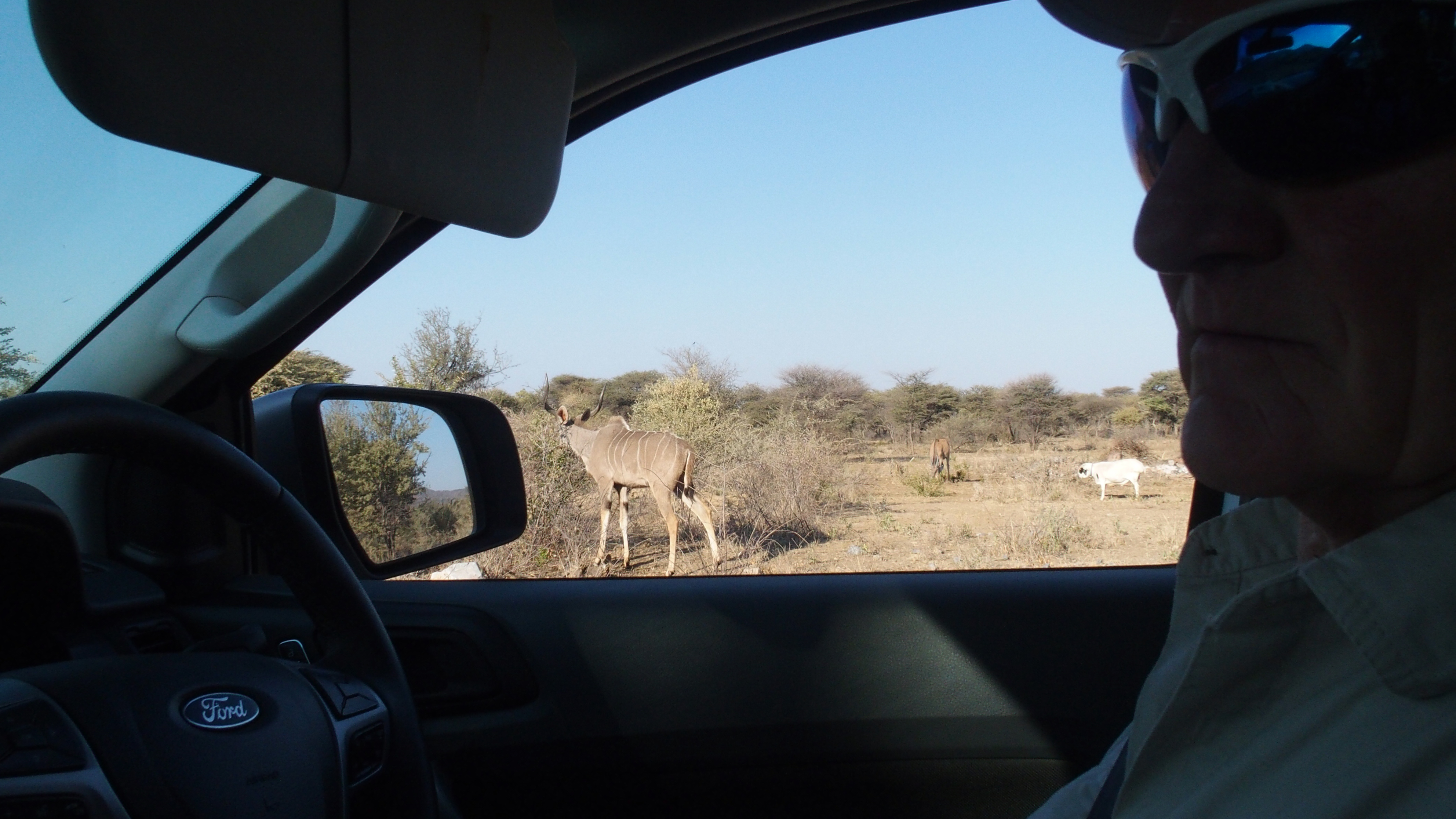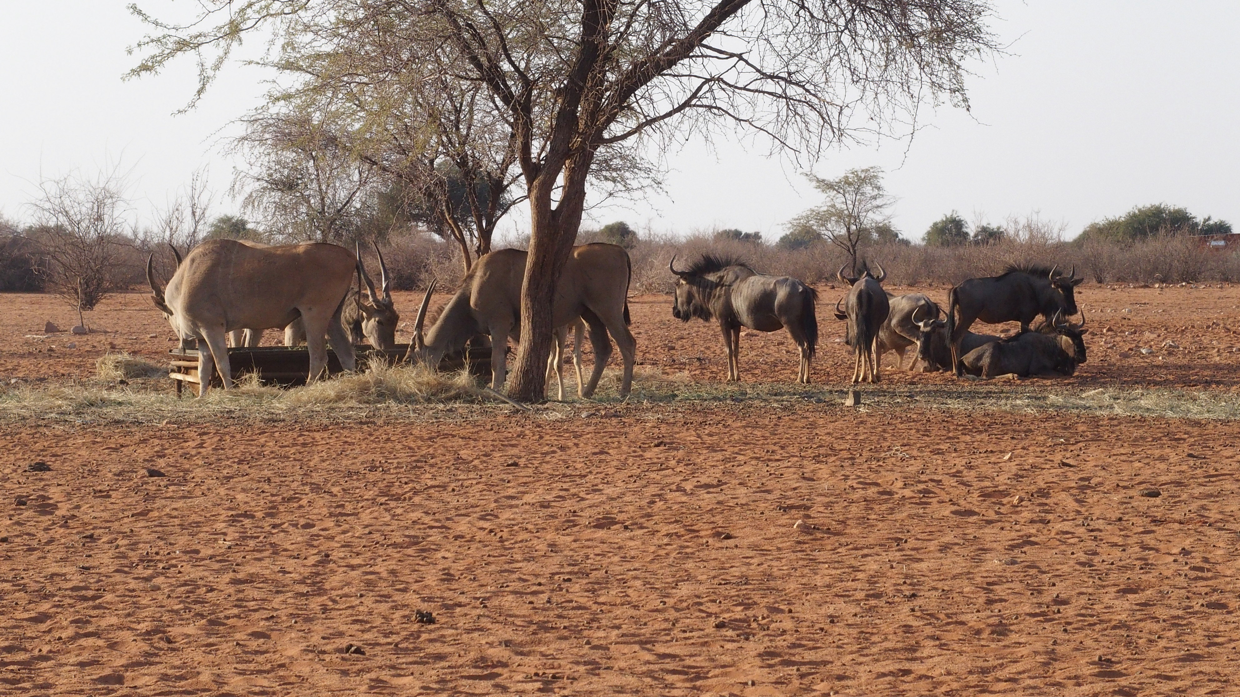 Trotz Allem kommen wir nach 340km auf der Gabus Game Ranch an. Sehr schön. Wir sind allein und fürchten uns anfänglich vor wilden Tieren. Strausse, Zebras und anderes Gevieche auf dem Gelände. Noel unterhaltet sich das erste Mal mit dem Rancher  am Wasserloch auf Englisch. Ein Platz zum Verweilen, doch es geht weiter in Richtung Tsumeb, nochmals zum Grosseinkauf. Vor allem benötigt Frank eine neue Brille und Manuel braucht dringend Hustensirup. Weiterfahrt zum Etosha Nationalpark.