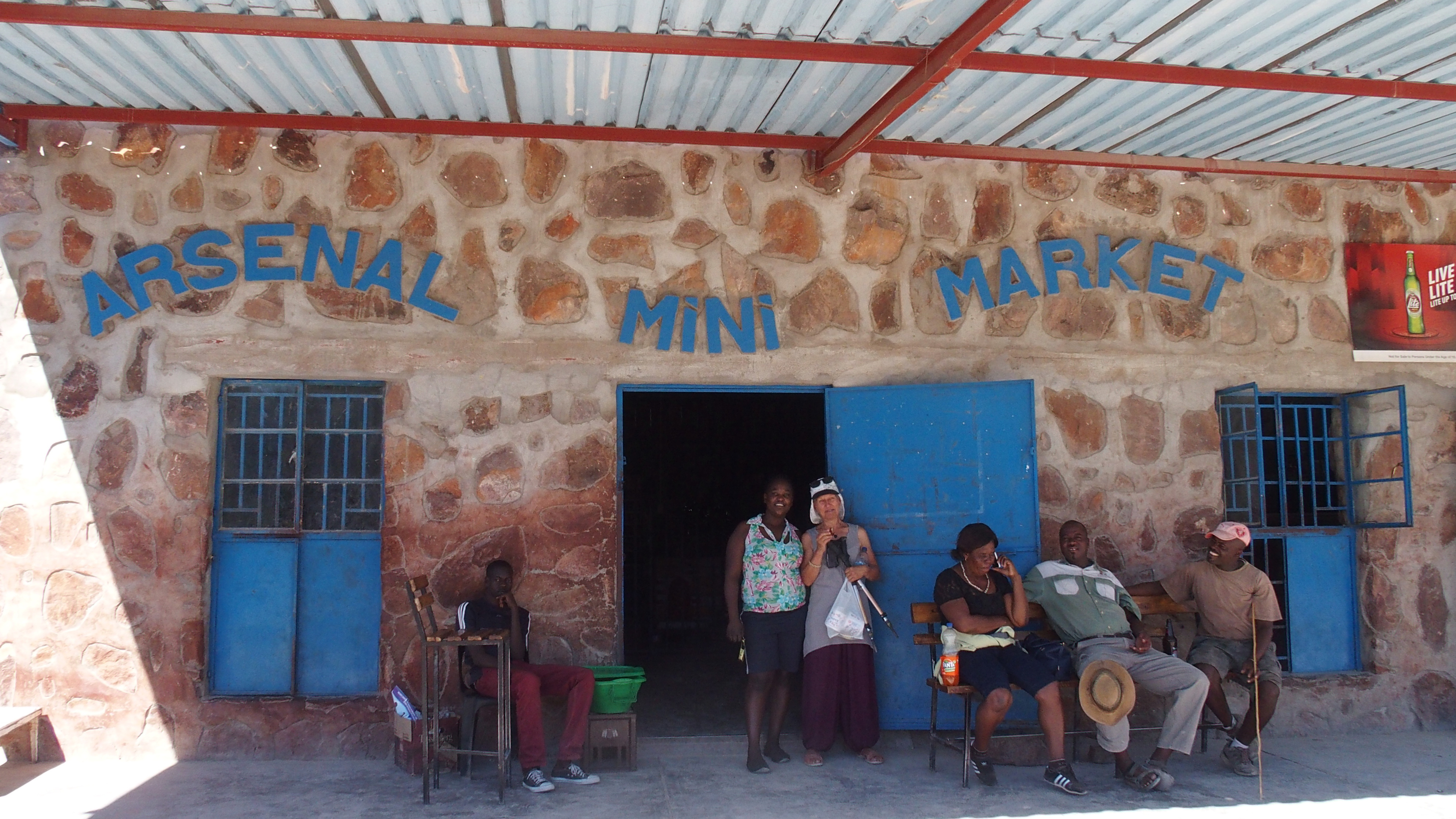 Nach ca. 240km kommen wir an in Opuwo. Es ist Samstag. Jösy und Frank gehen einkaufen im Superspar à la Africa. Manuel und ich hüten zusammen mit den Kindern unsere beiden Autos. Bruthitze, ständig müssen wir Einheimische abwimmeln, die alle etwas verkaufen oder ergaunern wollen. Dies muss  aber gesagt werden..Sie sind zwar lästig, aber Niemand muss vor ihnen Angst haben. Zwischendurch heult eine unser Alarmanlagen auf, weil die Kinder im Auto nicht mehr ruhig sitzen können. Endlich vollbeladene Abfahrt zum Campingplatz Opuwo Lodge, Platz fassen, Restaurantterasse, Rock Shandy, baden im eiskalten Pool. Alle Wlan Süchtigen kommen endlich gratis auf ihre Kosten. Die ganze Nacht verbringen wir unter Discoklängen aus gefühlten 1000 Lautsprechern und fahren früh Morgens nochmals in die Stadt, um zu tanken und Gas zu fassen. Heute ist Sonntag und man könnte nicht glauben, dass sie hier die ganze Nacht gefestet haben.....es ist nämlich schon wieder der Bär los. Gas auffüllen...mein Gott. Die Abfüllerei hat zu, weil eben Sonntag ist. Also schicken sie uns zum Eingeborenenmarkt, wo Fleisch gehandelt wird, Haare geschnitten werden, Garküchen stehen und Gas von Hand abgefüllt wird...