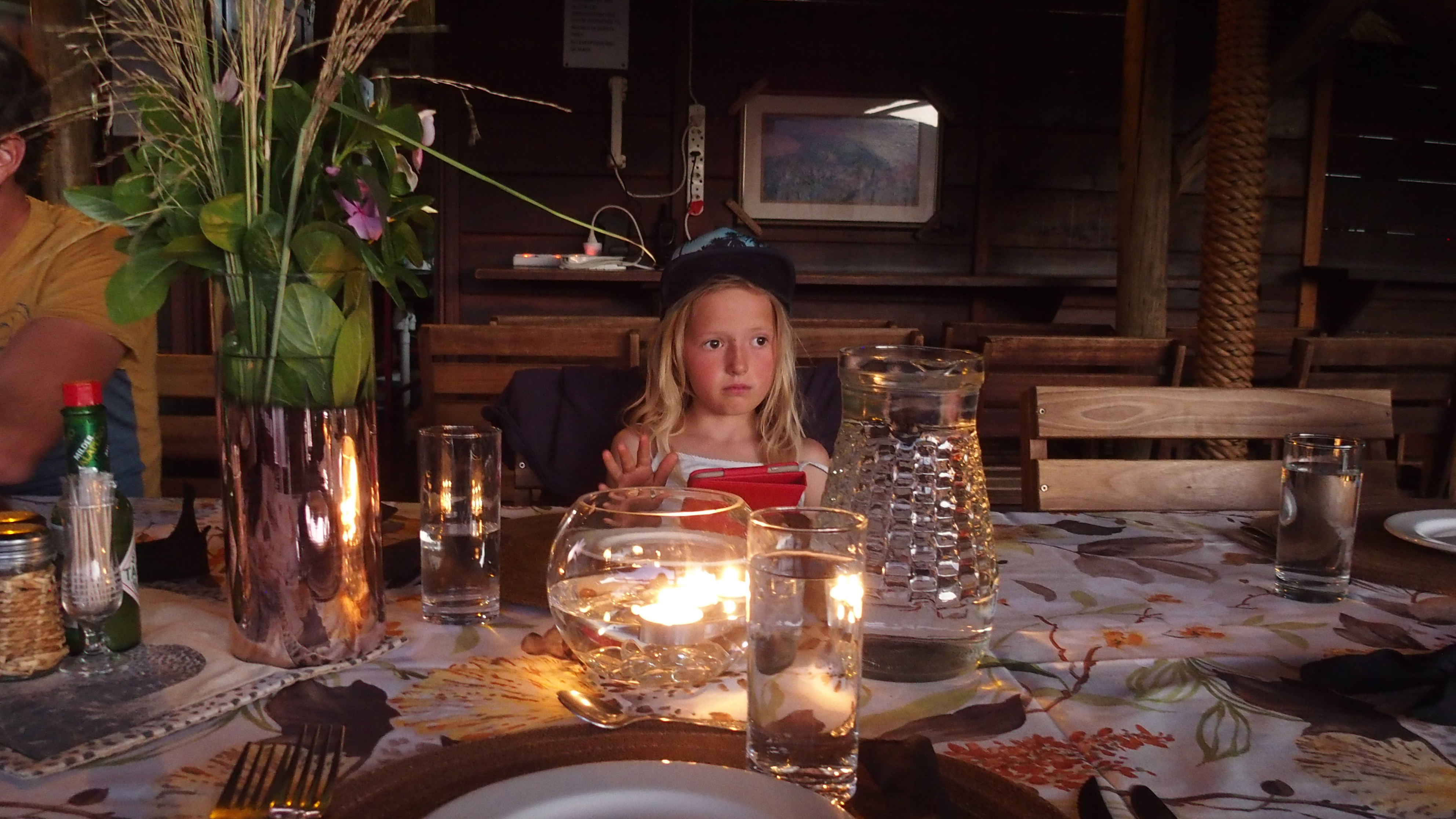 Heute Abend haben wir das Essen in der Beiz bestellt. Alle denken, dass Lynn krank wird. Doch als sie das Fleisch auf dem Teller bekommt ist alles wieder in Ordnung.