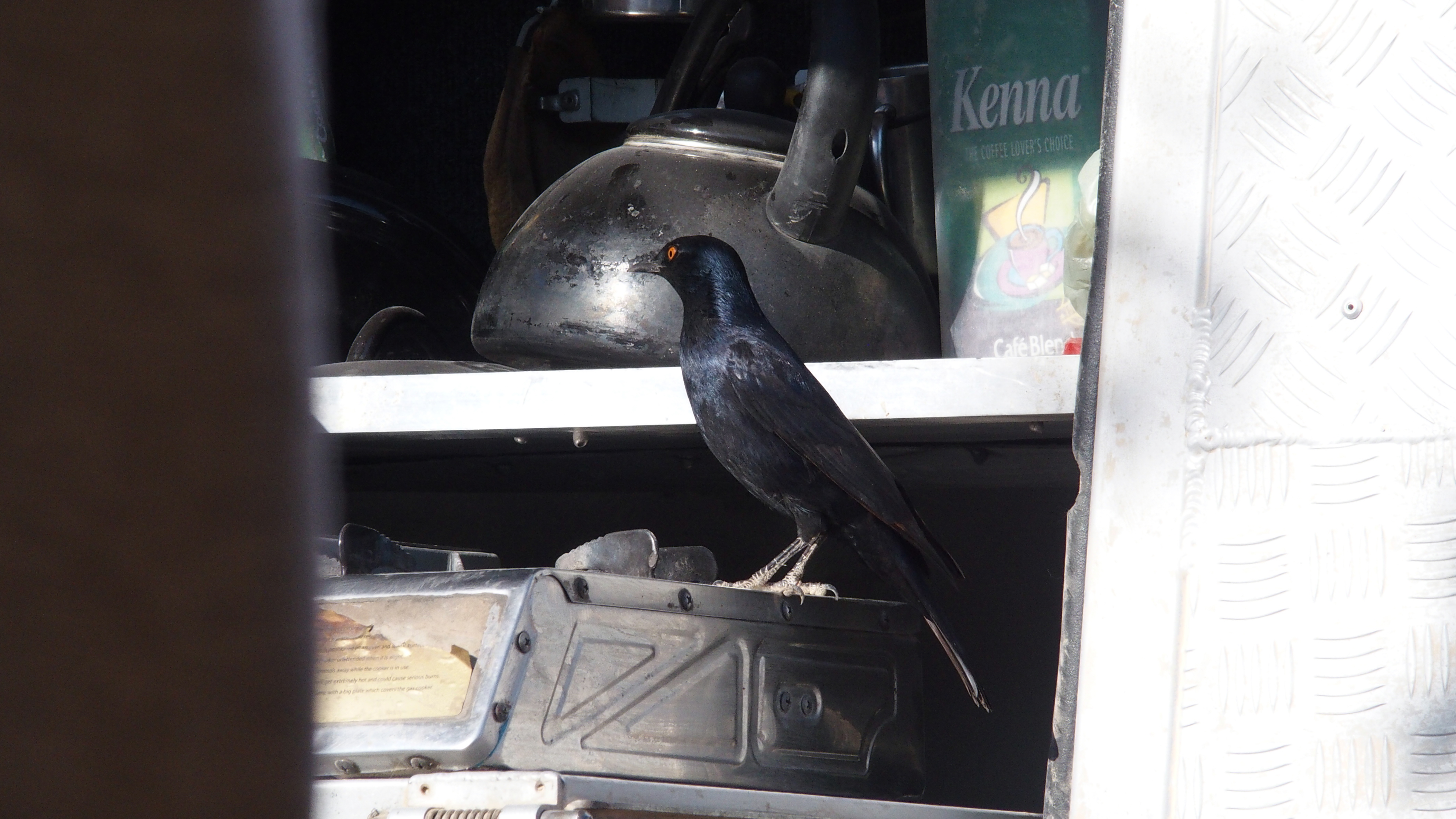 Zur Belohnung fahren wir in eine Polizeikontrolle und wieder einmal fehlen Papiere. Für  KEIN HOHEITSZEICHEN (das Fahrzeug ist in Südafrika eingelöst) bekommen wir eine Busse von ca. 40 Franken, die wir am nächsten Tag auf dem Posten bezahlen müssen. Frank bastelt später das ZA mit schwarzen Klebestreifen auf die Rückseite des Autos. Der zweite Einwand der Polizistin muss mit dem Vermieter abgeklärt werden. Er sendet die nötigen Papiere auf ein Handy....fraglich ist nur was passiert, wenn wir keinen Empfang haben?