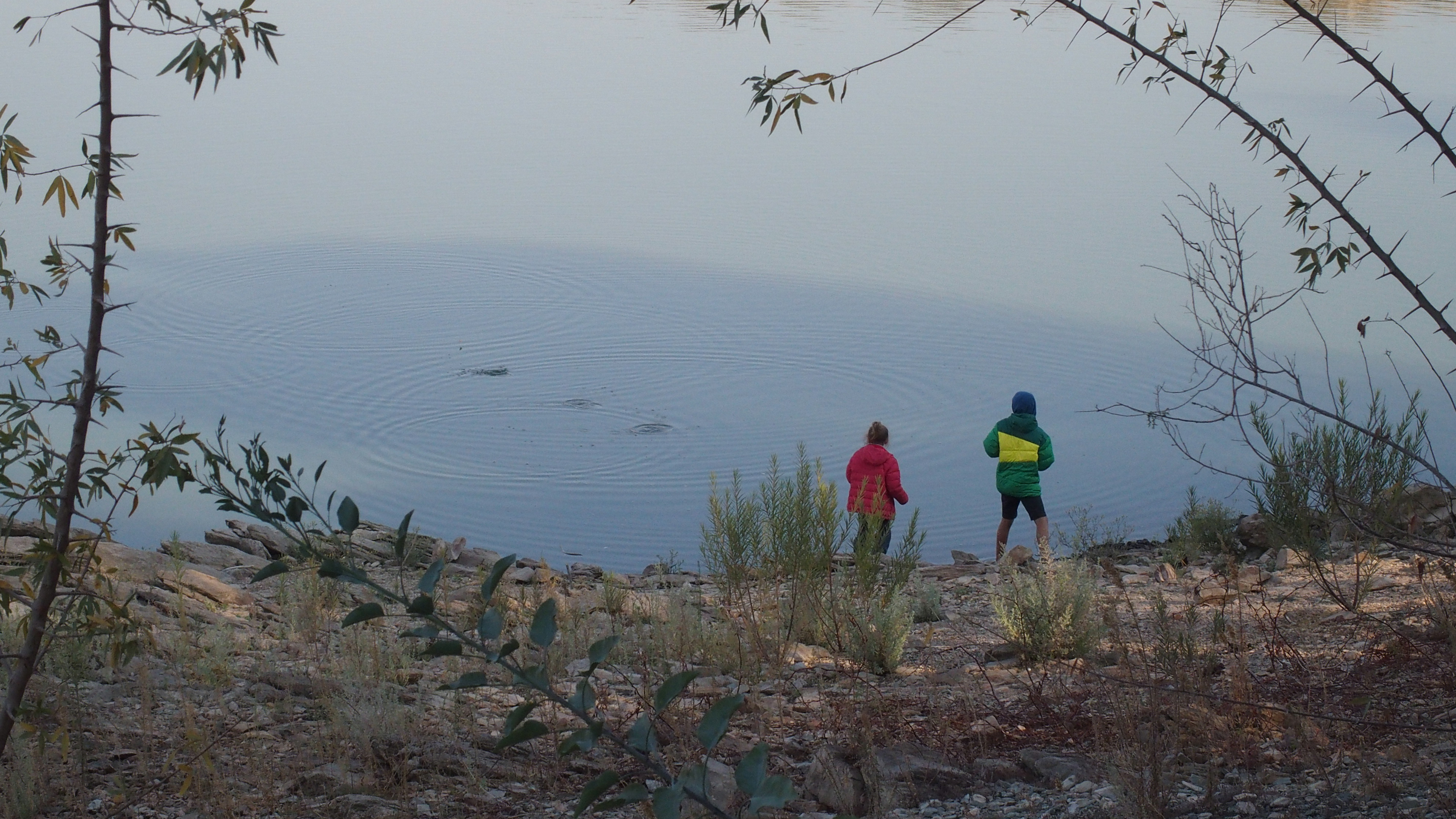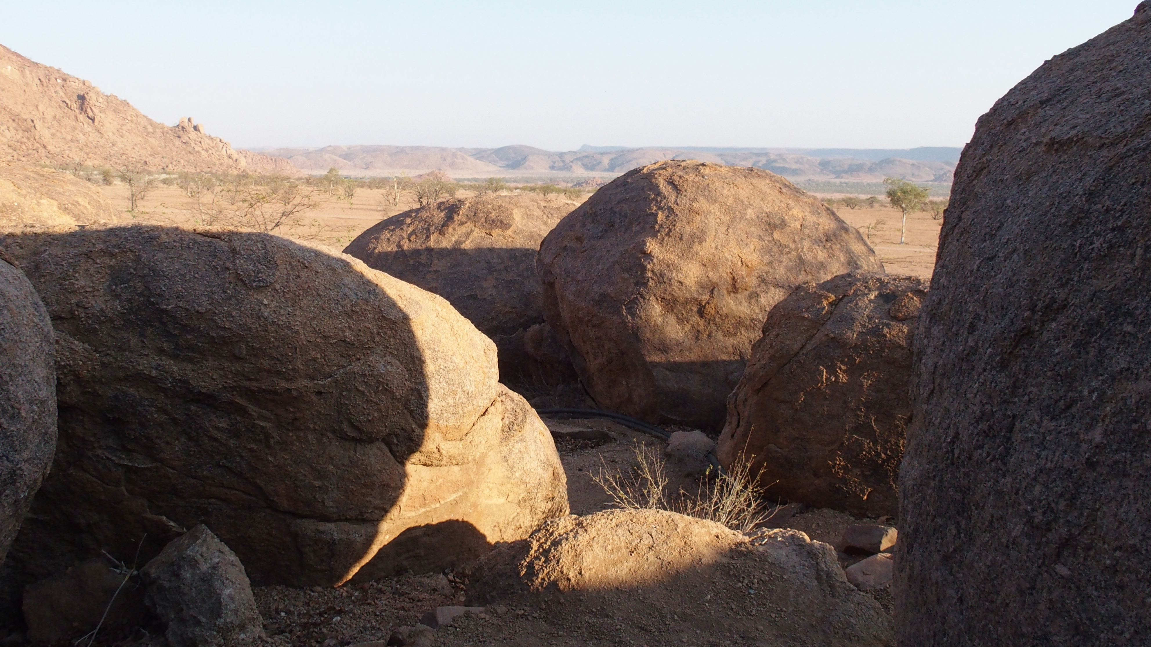 am nächsten Morgen stehen Frank und ich früh auf, um den Sonnenaufgang zu sehen. Nach dem Zmorge klappt das tägliche Muss trotz Plumpsklo. Frank hat es am Vortag sorgfältig mit einem halben Pack Hygienetüchlein geputzt. Nach dieser Sache machen wir beide eine kleine Wanderung von ca. 1 1/2h in die Felsen und finden sogar Gravuren, die man eigentlich nur mit Guides besichtigen dürfte. Auch hier gibt es offenbar Chaoten, die Kulturerbe zerstören. Wieder zurück laufen wir zum Eingang, wo wir Kaffee und Kuchen essen und uns ausgiebig duschen. Auf dem Rückweg kommt uns gerade der andere Teil der Familie entgegen, mit ähnlichen Ideen wie wir. Die Kinder kriegen Pommes Frites am Eingang, ob es noch zum duschen gereicht hat wissen wir gar nicht?