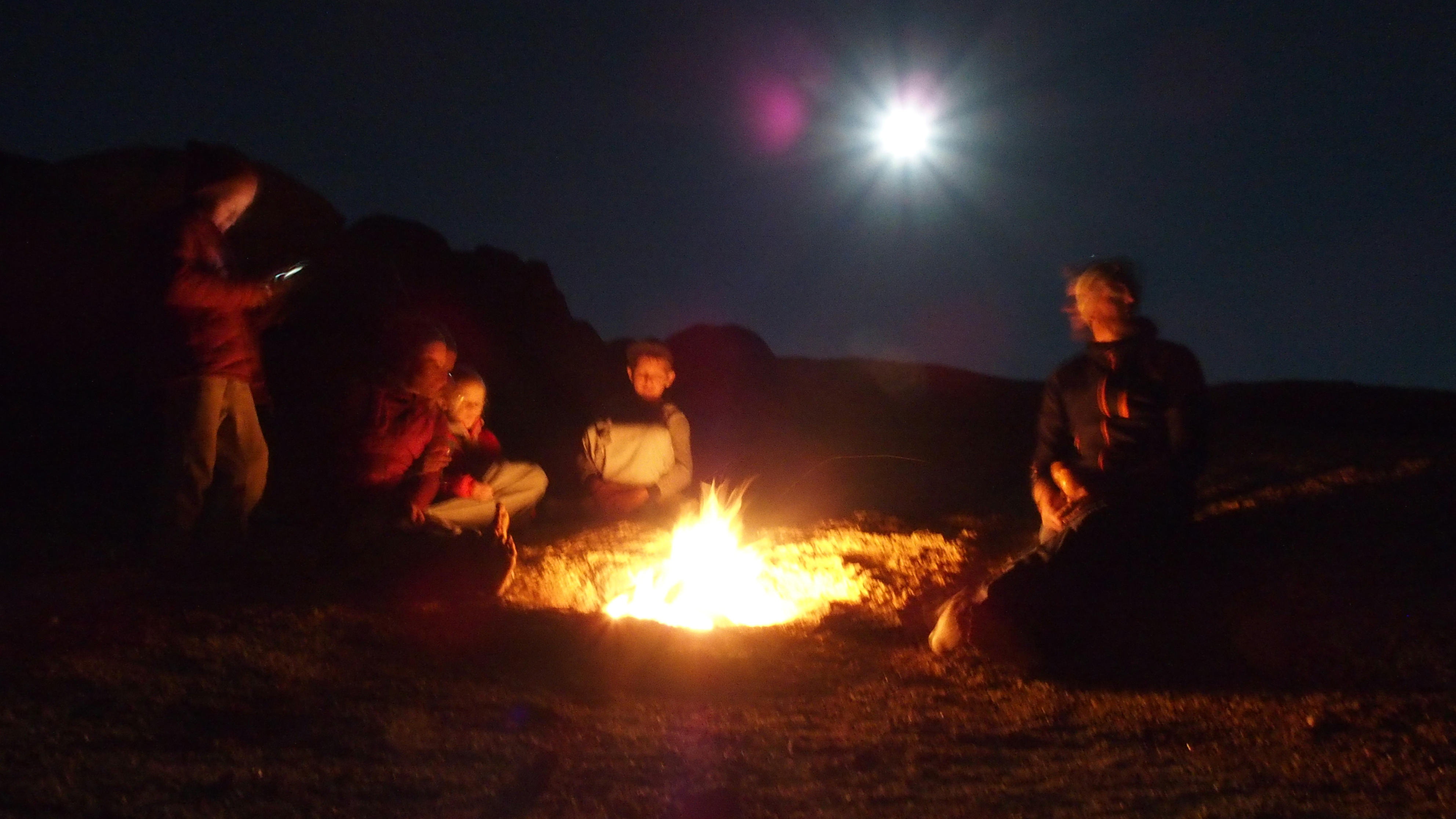 Noel und ich basteln trotz wir kein Wasser haben aus einem Fleischberg Hamburger, die sich sehen lassen. Mit Nichttrinkwasser aus dem Tank und viel Spülmittel waschen wir danach unsere Metzgerhände. Joy und Manu machen Zugaben mit Käse, Zwiebeln, Tomaten etc. Dazu die in der Pfanne kurz angebratenen Burger und Brötchen direkt auf dem Grill. Ein Gedicht. Eines unserer besten Menus seit 3 Wochen. Wir schaufeln das ganze Grillfeuer hinter ein paar Steine, hocken darum und es werden noch gefühlte 1000 Spitzkoppe- Bilder geknipst.