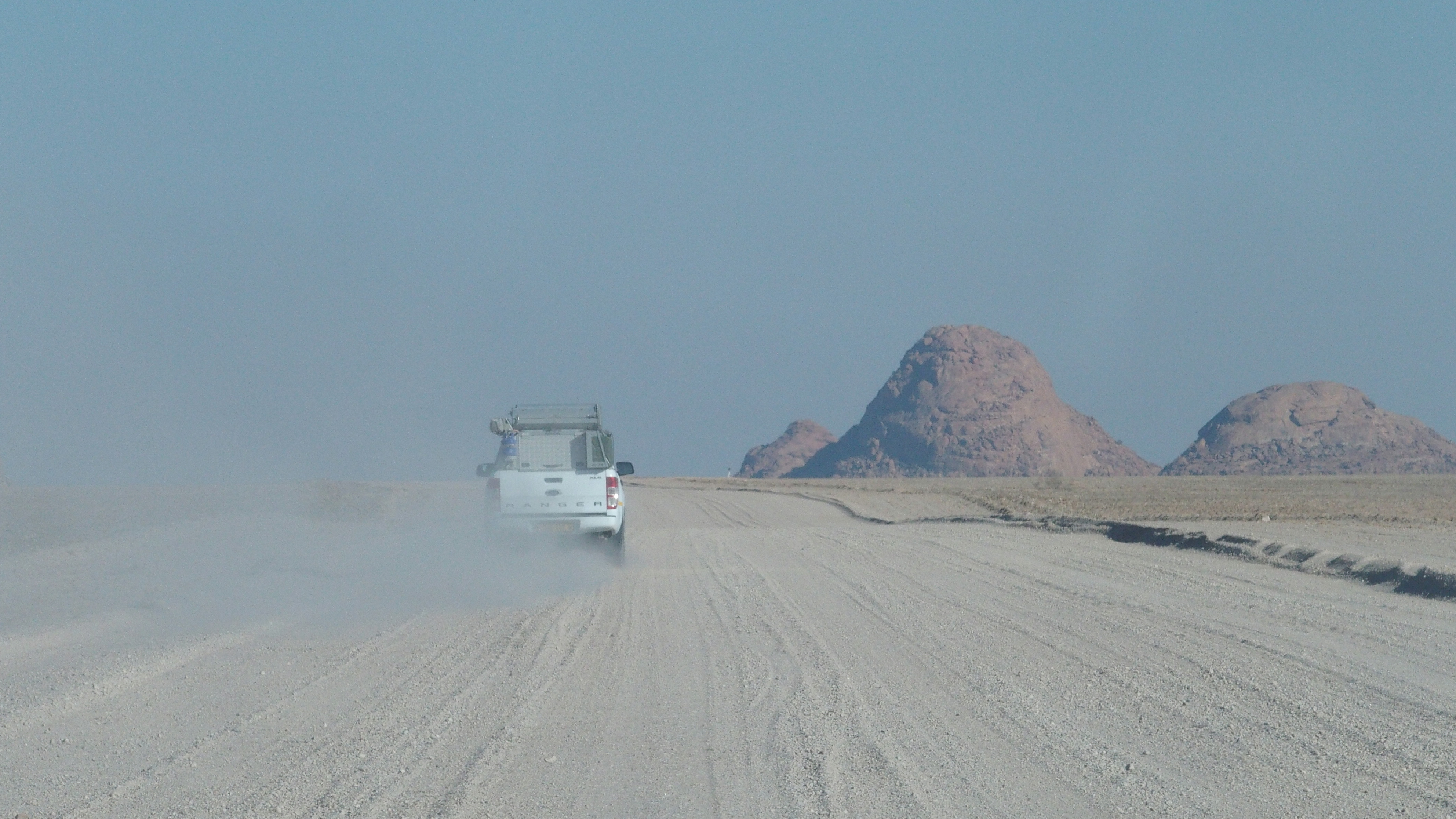 BrünslipauseBrünslipauseEine der langen Strecken, 280km haben wir nun vor uns, Fahrt dauert etwa 4 Stunden.  Wüste, Kuiseb Pass, nochmals Wüste bis zum Rand der Namib Wüste ins Camp Gecko.Kuiseb River ohne einen Tropfen WasserKuiseb River ohne einen Tropfen WasserJösy gibt Gas......Jösy gibt Gas......