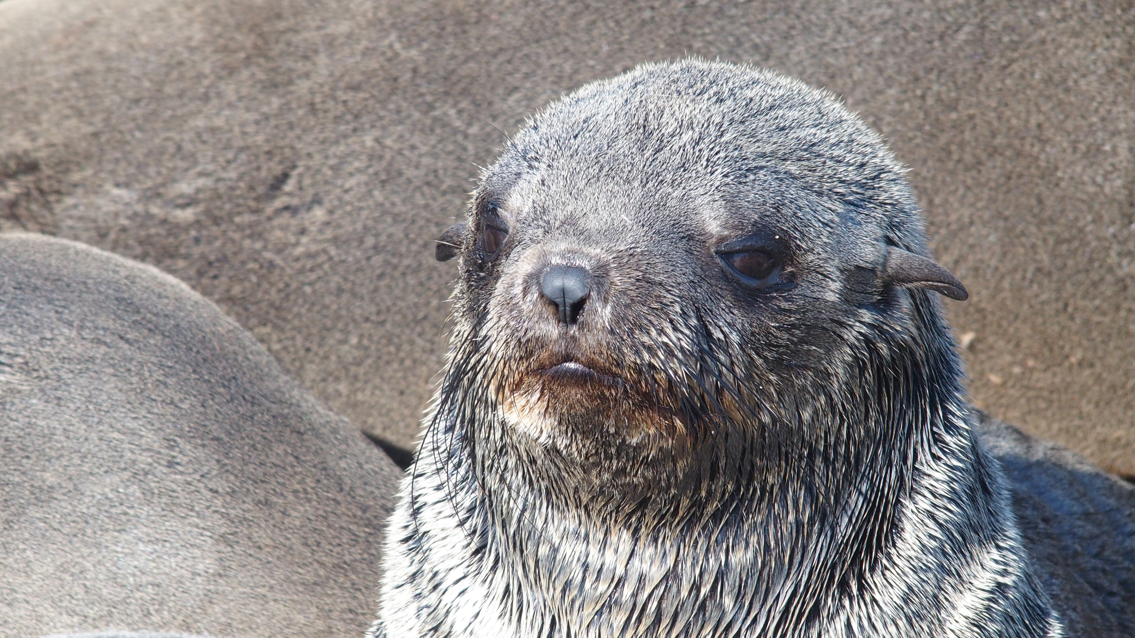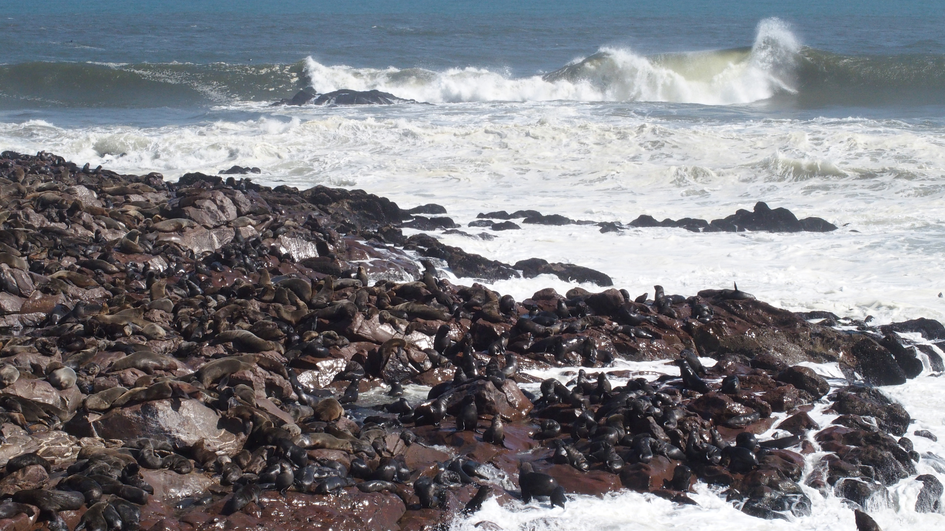 Donnerstag, 18. Juli 2019 Abfahrt nach Henties Bay am Meer ca.160km.  Gas, Benzin, Pneu flicken und weitere 60km nach Cape Cross zu den Seehunden.