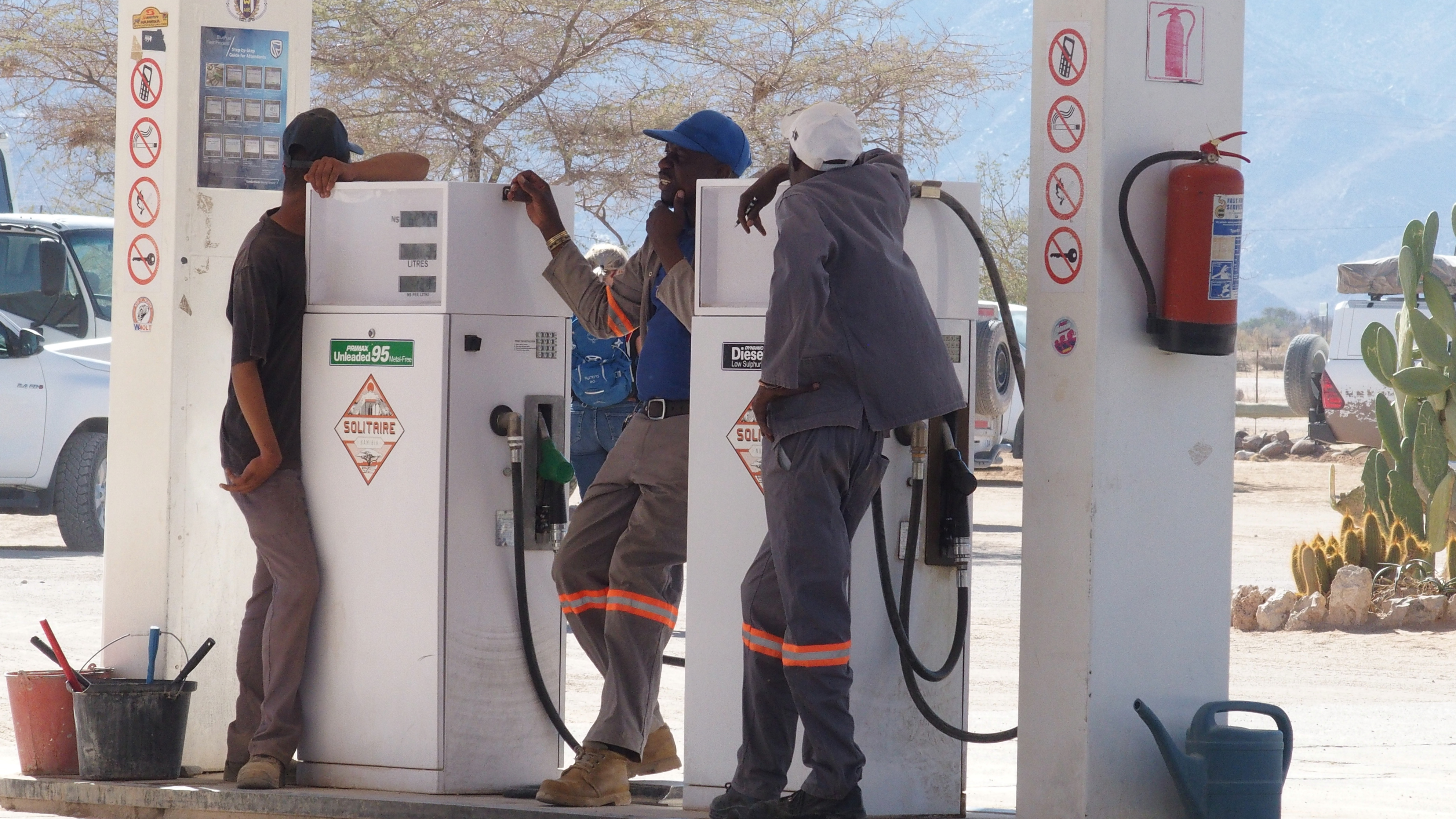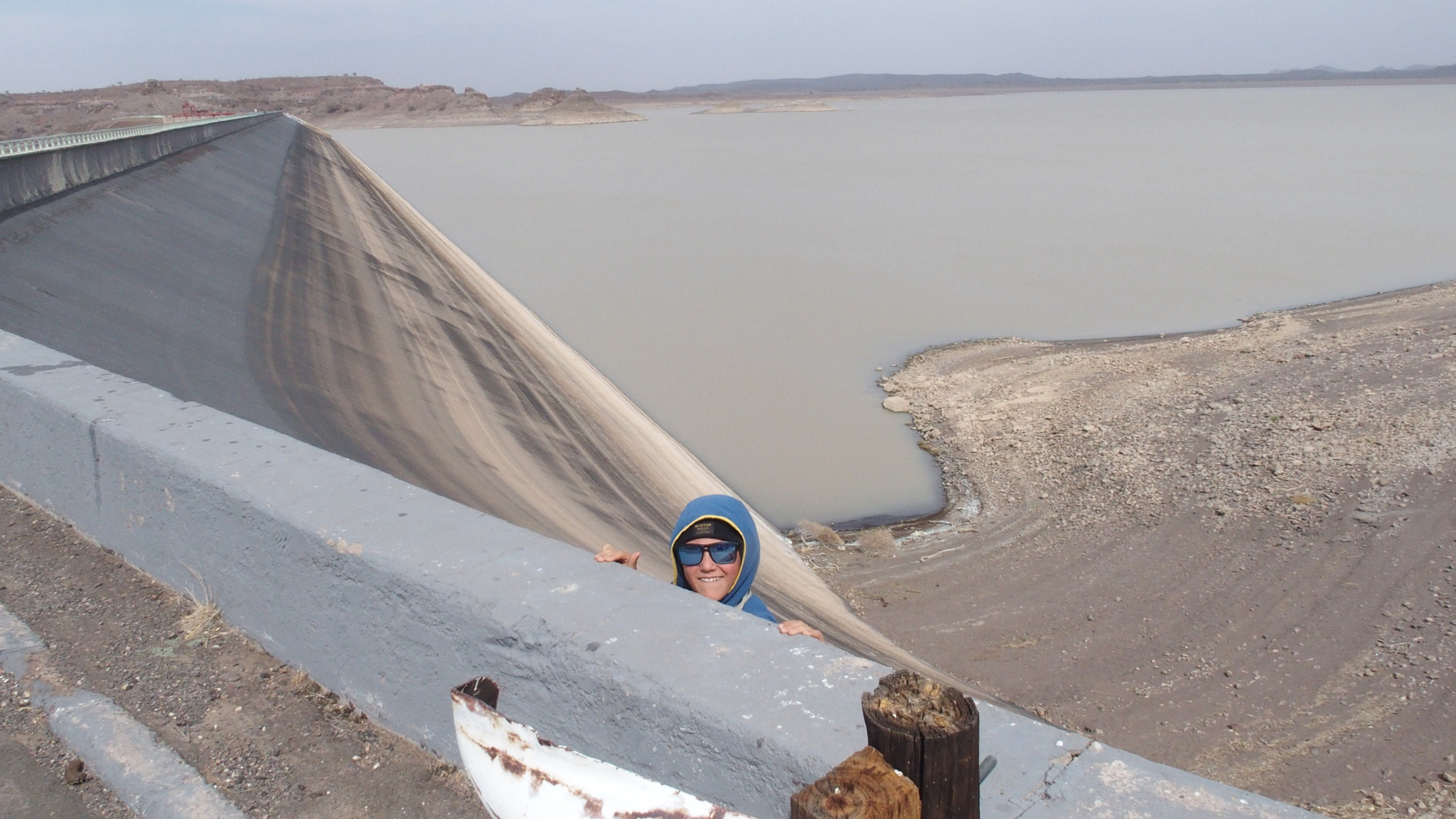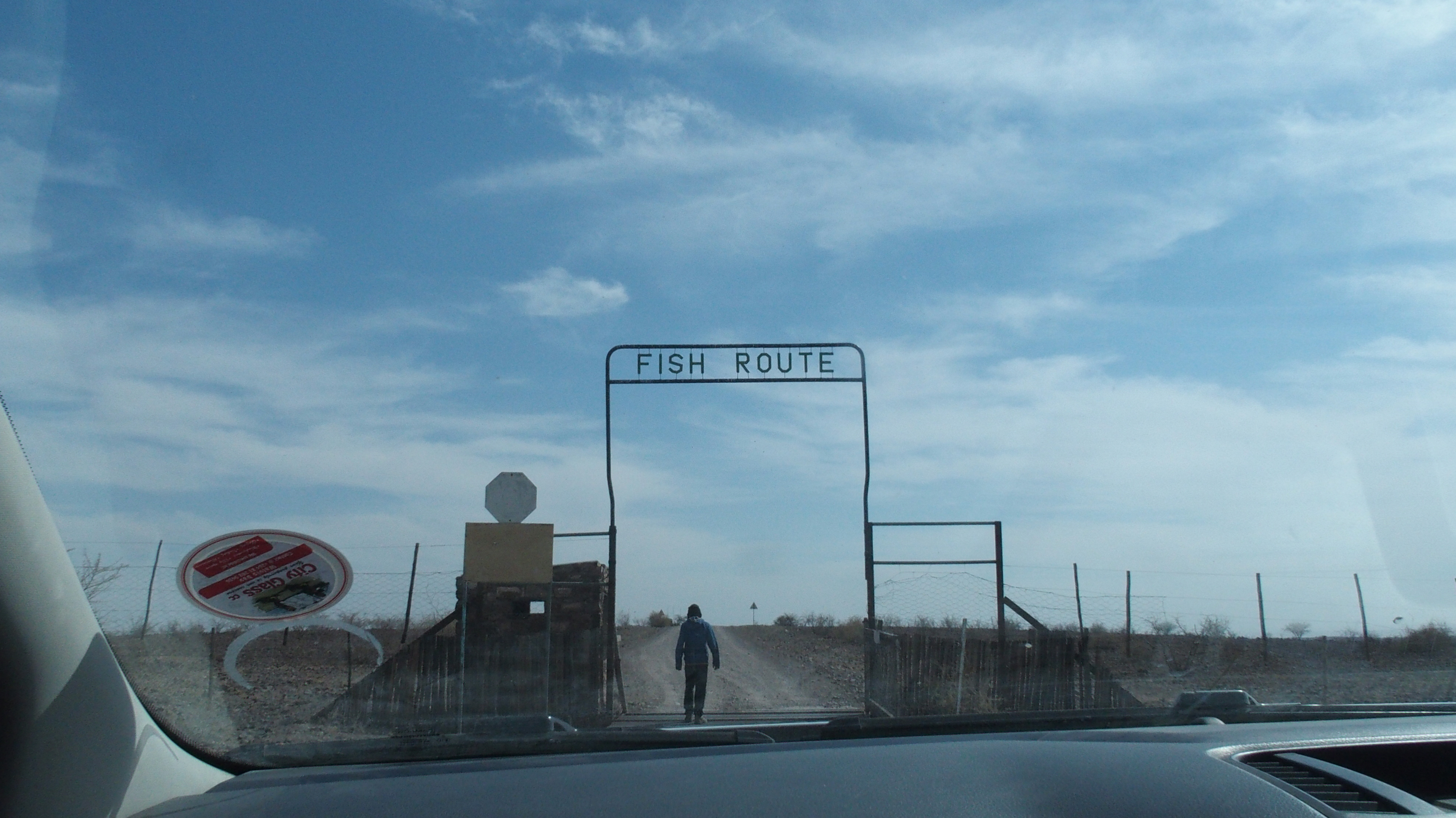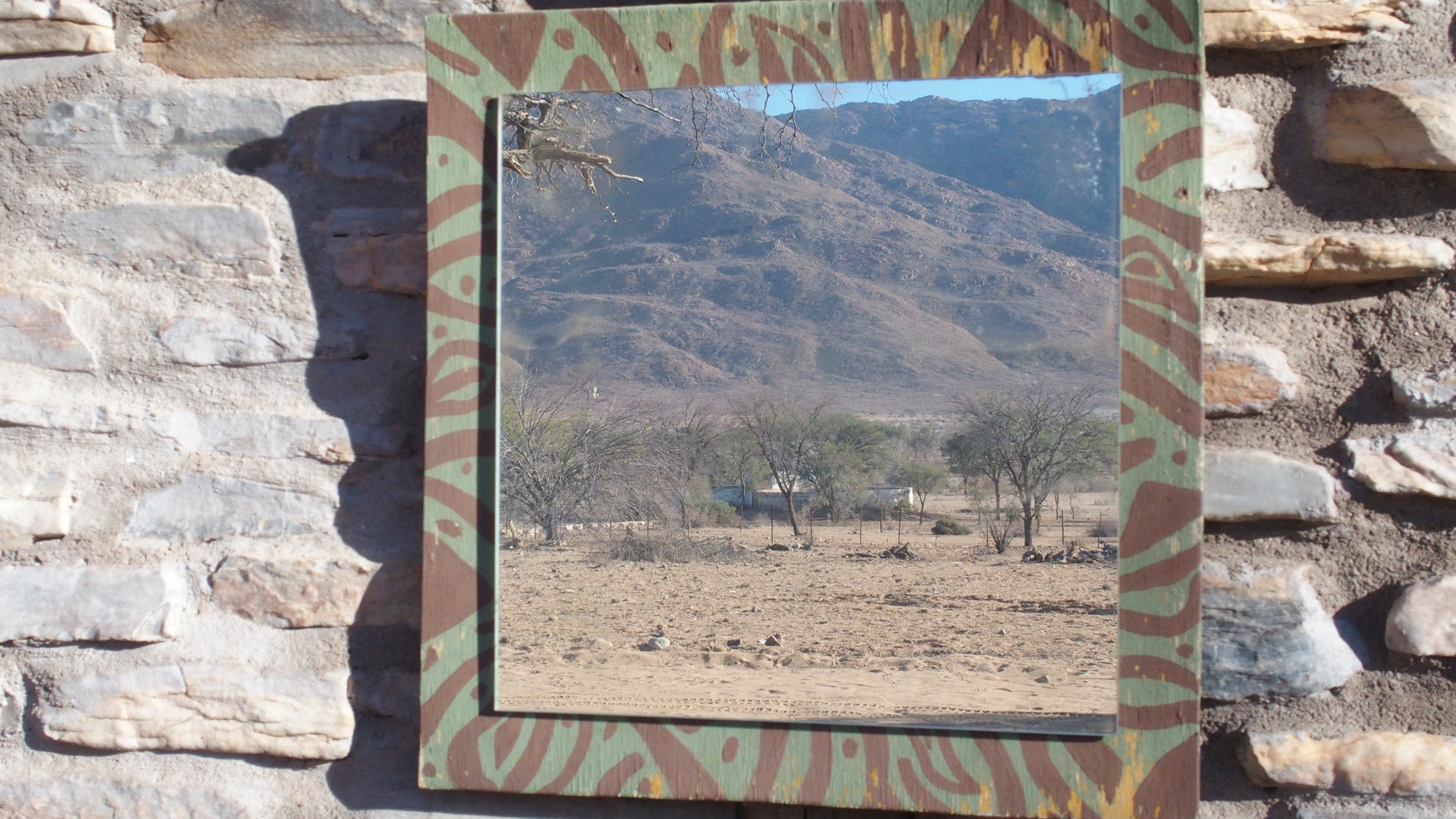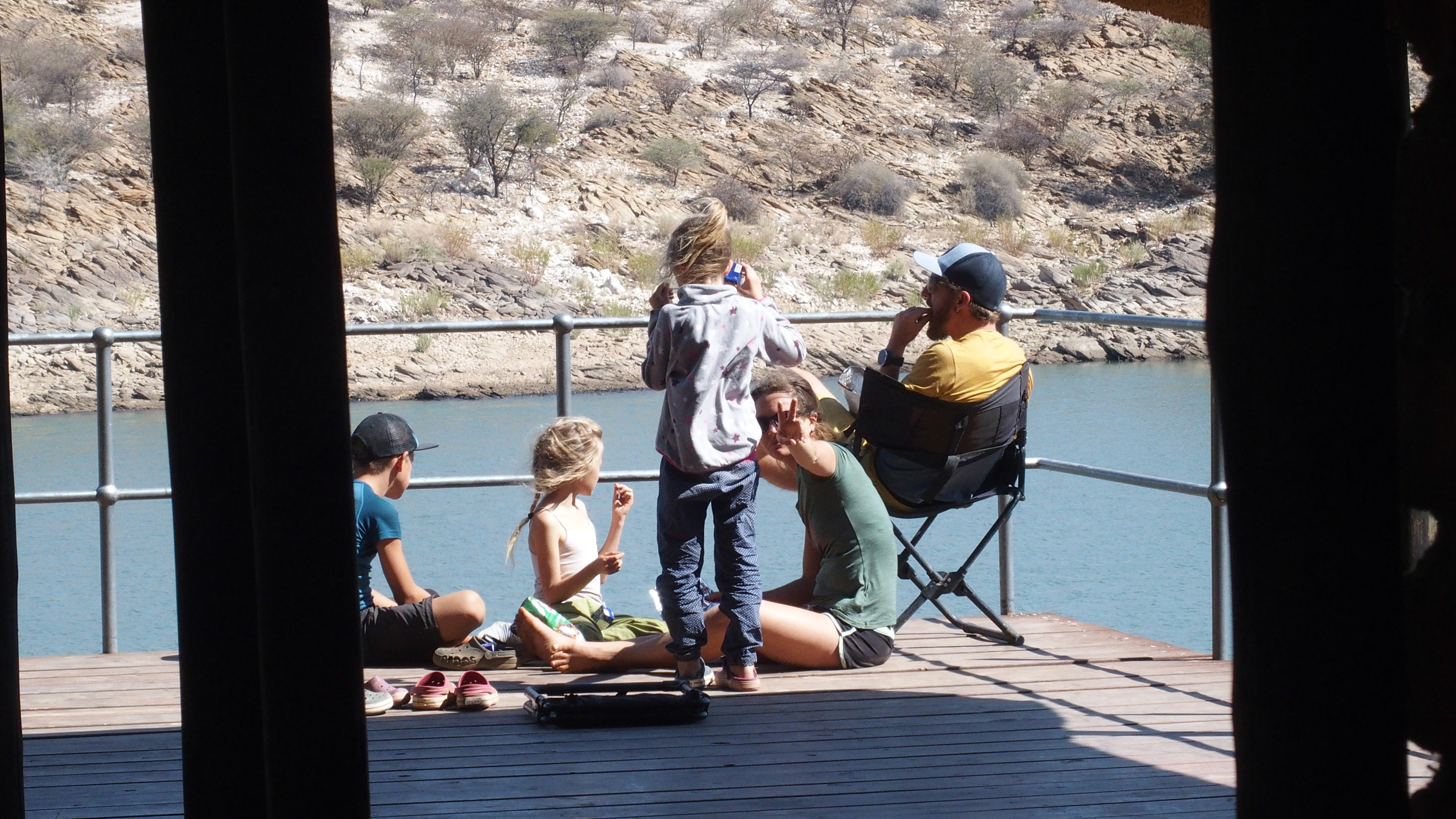 Gleichentags machen wir mit Noel einen Ausflug zum Hardopdamm. Der Damm ist nur noch mit einem Drittel Wasser gefüllt, dies nach sechs Jahren zu wenig Regen. Trinken etwas im pompösen Restaurant und machen Trittbrettsafari übers Land. Treffen einen Fischer, der mit seinem VW Turan tatsächlich durch diese unmögliche Lochroute zum Wasser hinunter gefahren ist. Er feiert dort unten mit seiner schwangeren Frau den einjährigen Hochzeitstag. Auf dem Rückweg fahren wir nochmals nach Mariental um Wasser, Früchte, Brot und Fleisch zu kaufen.