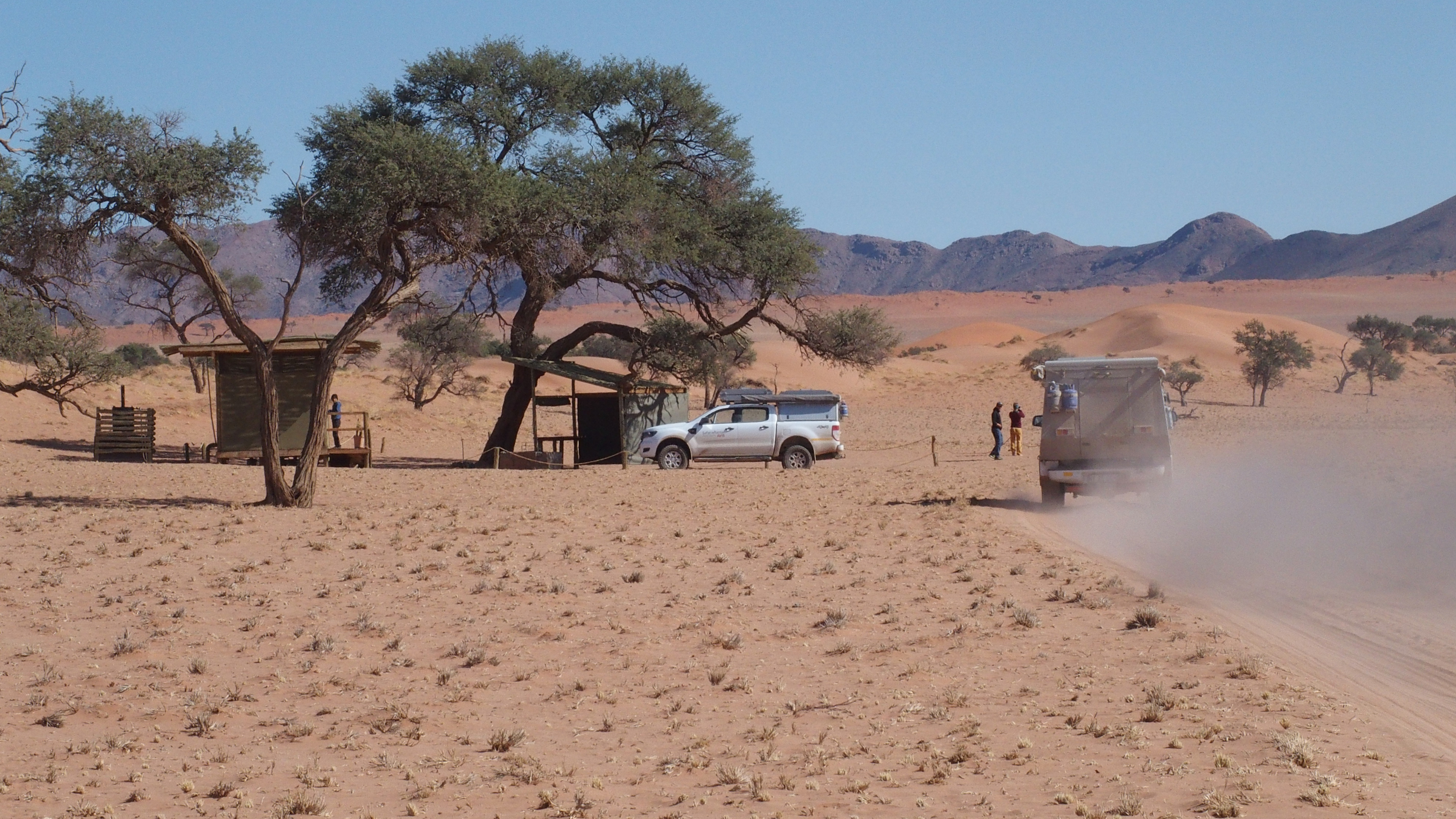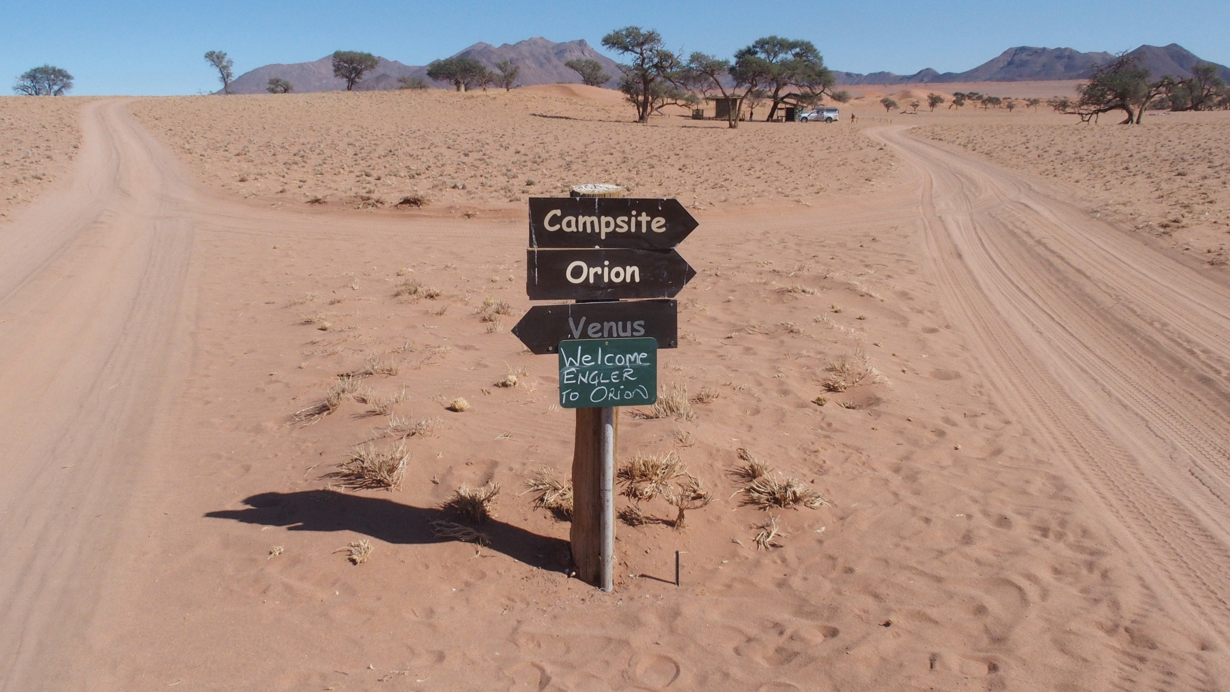 Dienstag 23. Juli 2019. Fahren weiter südlich auf Frank`s angestrebtesten Platz überhaupt!  Wie wir erst jetzt erfahren, hatte er ihn bereits gebucht bevor allen andern Plätzen. Das ganze Reisegefüge NAMIBIA ist um diesen Platz herum aufgebaut worden. Einer der begehrtesten Plätze überhaupt, eigentlich ganzjährlich ausgebucht. Nur drei Standplätze, verteilt auf hunderte von Metern mitten in der Wildnis. Ein wunderschönes WC-Häuschen, mit Solarstrom, Wasser und Holzboden. Ausserdem ein gedeckter Unterstand gegen Hitze, Sand und Wind. Der schönste Platz überhaupt leider gab es nur zwei freie Tage zu buchen. Im mit "Welcome Engler auf dem Platz ORION", nehmen wir also Platz und fühlen uns sofort wohl. DIES IST EIN WORLD HERITAGE SCHUTZGEBIET. Eines der wenigen Plätze der Welt ohne künstliches Licht. Man stelle sich die Sterne vor!