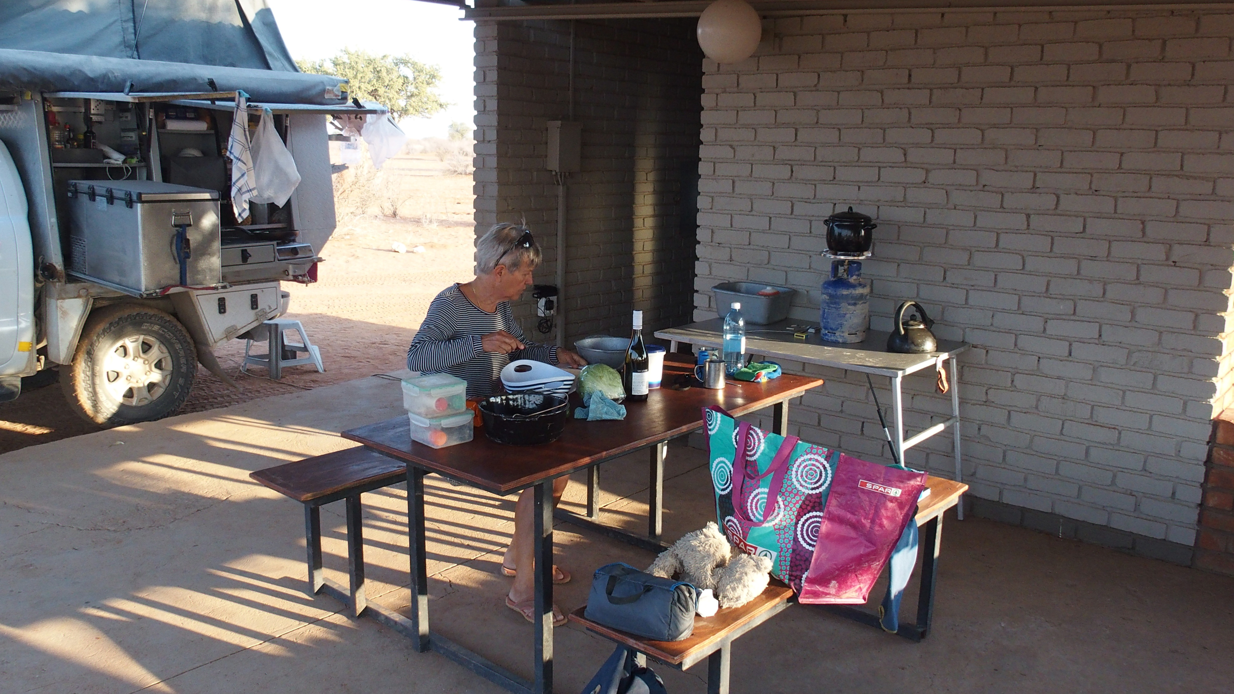 Am Eingang essen wir Salat, wer weiss ob es nochmals davon gibt.  Danach suchen wir uns einen Platz der passt für die nächsten Tage. Gross sind sie alle, Plumsklos stehen überall die Gleichen, kein Strom, kein Wasser. Wir entscheiden uns für den Platz, der nur 2km von der Dusche entfernt ist, damit wir`s dorthin auch ohne Auto schaffen werden. Nein, ein schöner Platz, richtig gross und an das Sch....häuschen werden wir uns gewöhnen. Wir stehen genau zwischen dem Sonnenuntergang und dem Mondaufgang und heute ist Vollmond. Die beiden Kugeln machen einen Wettkampf, welche roter leuchten soll.