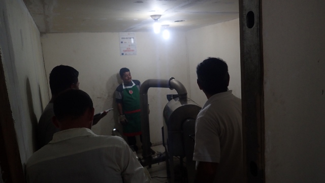 Hier noch ein Querschnitt durch die Arbeit und die fröhliche Kaffeecrew von Frank << ihnen hat er empfohlen, ein Loch in die Wand zu schlagen, weil vor lauter Sauerstoffmangel die Gasflamme nicht brennen mag...... |