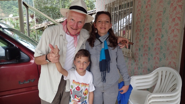 Bei grösster Hitze im Auto von Mauricio (war schon Franks Betreuer vor 2 Jahren in Loja) Fahrt in die Berge ohne Klimanlage. Auch Fernando der technico de campo der Entwicklungsdirektion fährt mit . In Pinas rasch ins Hotel für eine Dusche und noch rascher zum Mittagessen, was man hier alle Tage pünktlich benötigt. Erneute Fahrt über einen 1300m hohen Hügel zu Kaffeebauern der Gemeinde Capiro 20km südlich der peruanischen Grenze. Besuch bei der asociasion Montubios wo eigentlich eine neue Maschine stehen sollte. SOLLTE........Ein Ingenieur hat alle Details einer kolumbianischen Maschine zum Nachbau nach China geschickt, die Entwicklungsdirektion hat anbezahlt und geschehen ist nichts. Die Maschine die dort steht ist nur zum Erdnüsse rösten brauchbar. Naja, Lehrlauf. Zum Trost Schwatz und Kaffee mit süssem Brot bei einem Bauern. Weiter zum nächsten Bauern der asociacion angehört. Frank hat von ihm Muster vom sehr gut aussehendem Kaffee und wird ihn in seiner Unterkunft beim Zmorge testen.