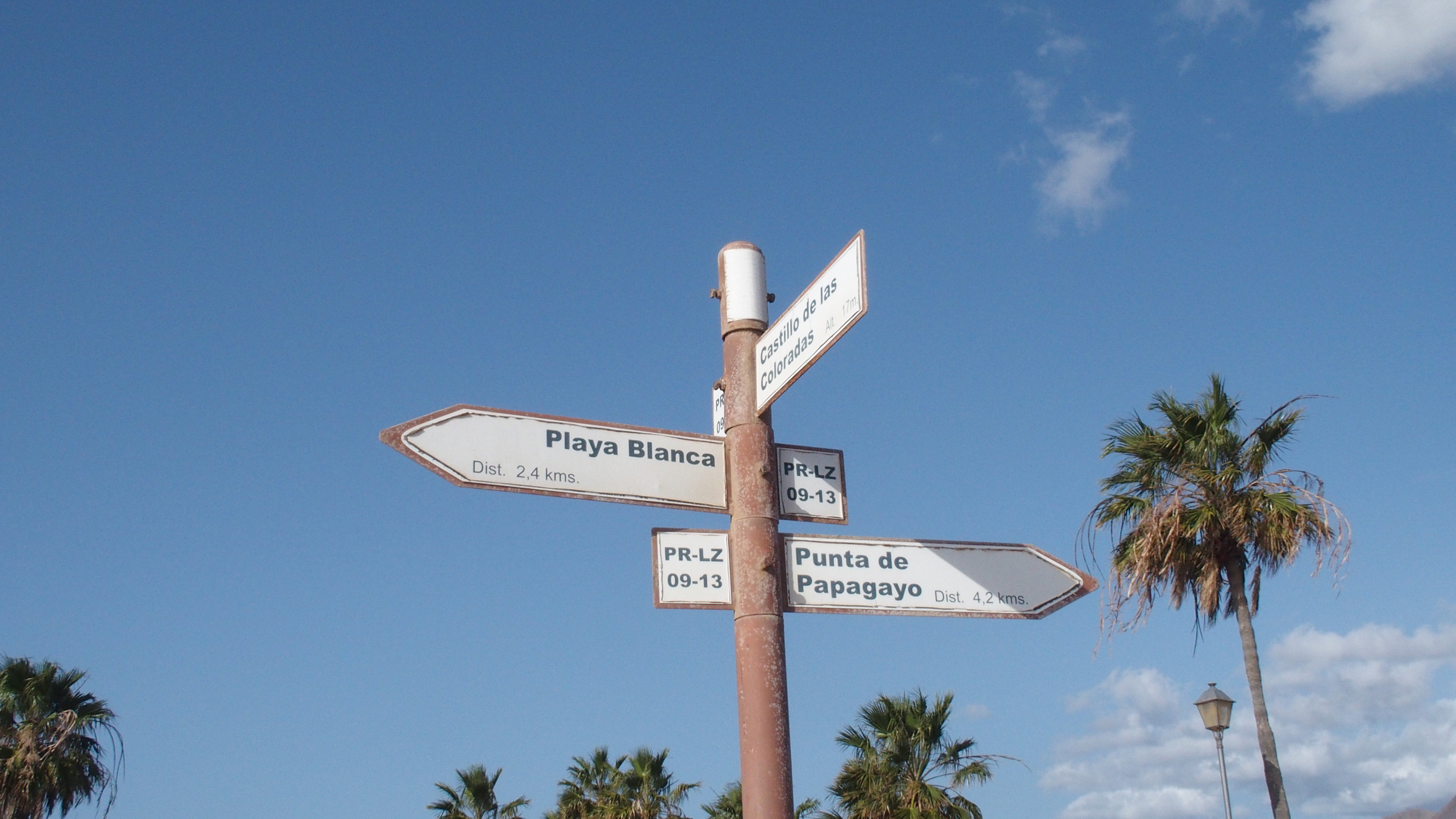 Fahren an den südlichsten Zipfel von Lanzarote. Genau gegenüber liegt Fuerteventura, mit dem Fährschiff 20 Minuten Entfernung. Wir parkieren in der Shopping Mall, weil da die Parkplätze gratis sind und wir am Ende unserer heutigen Exkursion hier eh noch einkaufen wollen. Start also Supermarket, Ziel Punto Papagayo, wo es wunderschöne Strände geben soll. An zwei Stellen kann man über sehr schlechte Wege mit dem Auto in der Nähe parkieren, sie schreiben aber in den Führern es gäbe immer Platzprobleme und die Zufahrt ist schlecht für die Autos. Man kann dazu sagen, alle machen es trotzdem, wir halt nicht. Wir wollten schliesslich Bewegung und sind zuerst der wunderschönen Esplanade entlang bis zum letzten Hotel von Blaya Blanca gelaufen und haben dann den Staubweg unter die Füsse genommen.so läuft man die 4.2km durch die Wüsteso läuft man die 4.2km durch die Wüste